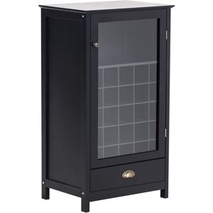 Glass-Fronted Sideboard with Wine Rack. Bring a touch of class to your home with this black sideboard, featuring a wine rack and glass-fronted doors for stylish storage. With space for wine bottles and additional storage for glassware or decor, it combines practicality and chic design. Ideal for any modern home, it offers both functionality and a sophisticated look. Details: Product Type: Wine Cabinet Style: Traditional General Color: Black Material Type: Engineered Wood Main Material: MDF Additional Material: Tempered Glass Legs material: Engineered Wood Top Material: Engineered Wood Doors Opening: Standard Drawers: Yes Finish: Painted Leg Caps/ Pads: Yes Number of Doors: 1 Number of Drawers: 1 Shelves: Yes Dimensions: Depth: 40 cm Width: 58 cm Height: 102 cm Weight: 25 kg Drawer Weight Capacity: 10 kg Shelf Weight Capacity: 20 kg Top Weight Capacity: 60 kg Offer Includes: 1 x Display Cabinet Key Features: Special Wine Glass Racks, Features Built in Wine Rack, Works Great with Many
