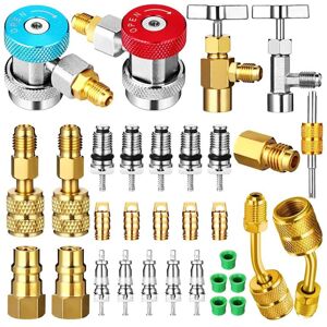 Made of brass, aluminum and steel materials, , temperature resistance and resistance, providing solid internal structure, heat resistance, durability and rust resistance, ensuring long -term service life. The connection parts adopt a precision fine thread design, and the interface is also equipped with sealing parts to safety. The design of R1234YF to R134A conversion adapter can provide good sealing. At the same time, it has closed functions. It is convenient to use and effectively prevent leakage. These low/high-side modification/adapter/accessories be converted to the old 1/4 inch SAE or 7/16 inch -20 UNF R12 R22 charging port to accept itR134A fast disconnecting hose; low side, 1/4 inches (7/16 inches-20) x x 13 mm (blue); high edge, 1/4 inches (7/16 inches-20) x 16 mm (red with a lock structure, removing pure copper adapter, sealing with O -shaped ring, longer service life, very suitable for connecting various instruments and using car air -conditioning refrigerant charging work