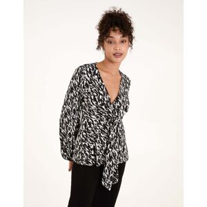This wrap top is the perfect staple for giving any outfit a fiercely feminine feel, whatever the occasion. 92% Polyester, 8% Elastane Made In China Machine washableV neck Long elasticated cuff sleeveWrap frontModel wears a size: SModel height: 5ft 8 / 173 cm