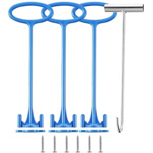SAY NO TO GROSS STUFF: are you tired of removing your skimmer basket while not knowing what lurked beneath the leaves, they may be snakes, spiders, lizards, etc.Now, you can easily pull the basket out without touching it. NO MORE SORE KNEES: the plastic handle stands up above the , with a T shape hook stick for pulling up it; No need to bend down on your knees to remove the skimmer lid and basket; A must-have for the elderly. UNIVERSAL COMPATIBILITY: both the blue handle and the hook stick are about 11.8 inches long, making them fit any skimmer basket inground or above ground, also accommodate a vacuum plate to fit over the basket. EASY INSTALLATION: just attach the handle to the skimmer basket bottom with the two screws (a screwdriver is needed,not included); Easy and quick; The bottom mounting plate provides a weight that allows the basket to quickly sink. Please note:the physical slightly color difference or difference, does not affect the use, please do not mind, thank you!