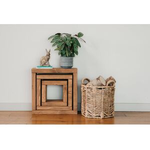 Introducing our Lehigh Handmade Rustic Cube Nest of Tables, crafted with meticulous attention to detail from premium quality wood. This beautiful set of nesting tables effortlessly brings a natural feeling to your room, adding unique character and versatility to your living space. Designed to save space, these tables easily fit together when not in use, making them perfect for homes with small or restricted spaces. Use them individually to scatter around the room or nest them together for a cohesive look. With their sturdy construction and Scandinavian style, these nesting tables are not only stylish but also highly functional. Place them in the living room to hold remote controls, glasses, and magazines, or use them as occasional tables for evenings with friends or family. Add a touch of charm to your conservatory by using them to display a pretty plant or a vase of flowers. Whatever your needs, the Lehigh Nest of Tables is sure to become a versatile and indispensable addition to your home decor. Union Rustic Colour: Dark Oak