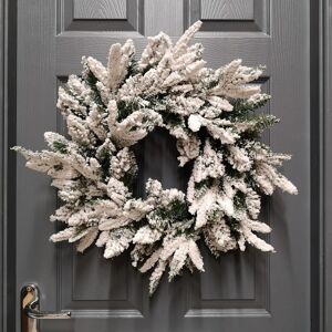 50cm Christmas flocked Lapland fir wreath Wreath has PE and PVC tips which gives a fuller effect Add in your own decorations and lights for full festive display, or perfect to leave undressed Perfect for hanging on your door at Christmas Matching garland available FTG187175