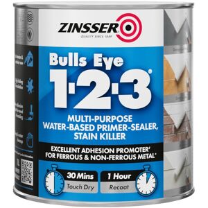 Bulls Eye® 1-2-3 is rust inhibitive and ideal for new metal. It resists flash rusting in its “wet” state – and provides rust resistance for the life of the coating. It dries to a smooth, tight, water-resistant film that is perfect for painting iron railings, steel doors, metal panels, duct work, galvanised gutters – any interior or exterior metal surface. It has a quick 30 minute drying time and 1 hour dry time and can be tinted towards the colour of your topcoat (mid-tone colours only) to eliminate the need for one coat of paint – saving both time and money. Key features and benefits Interior and exterior Adheres to all surfaces without sanding Seals stains, graffiti and tannin bleed Mould and mildew resistant film Rust inhibitive – great for new metal Dries in 30 minutes, recoatable in 1 hour Tintable to mid tone colours Application information Coverage - 10m2 per Litre Touch dry 35 minutes Hard dry 7 days Recoatable 1 hour Thinning Add 10% clean water and stir thoroughly. Note that