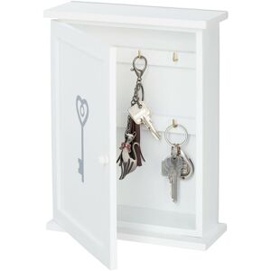 The beautiful small key box made of white lacquered wood fits perfectly in the hallway or hallway. Keep your keys always at hand with this key box. Thanks to its 6 metal hooks, keys can be easily hung up in the key cabinet. Behind its door, your keys remain hidden from view. In country house style, the key box creates a friendly atmosphere in any interior. Key cabinet in detail - Overall dimensions H x W x D: approx. 29 x 22 x 8 cm - Weight: approx. 1 kg - Material: Wood - Colour: White - With 6 hooks White wooden key box - With 6 hooks, keys are always at hand - Grey print in different designs - Natural material in light colour - Country house style creates a pleasant atmosphere - To hang up in the hallway or hallway Included in delivery - 1x Key cabinet - Decorative items not included