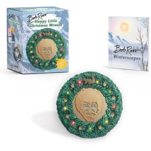 Bring the joy of Bob Ross to a Christmas tree (or stocking) near you with this one-of-a-kind light-up wreath ornament!- Specifications: 3" Christmas wreath with Bob's portrait in the center and featuring Peapod the squirrel- Lights up: Press a button to shine flickering colored lights on wreath- Sticker book: Includes a full-color sticker book featuring 8 of Bob's finest winterscape paintings- Perfect gift: A unique gift for fans of Bob Ross- Officially licensed: Authentic Bob Ross collectible Requires two AAA batteries (not included). © 2023 Bob Ross Inc. Bob Ross® name and images are registered trademarks of Bob Ross Inc.
