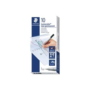 These universal Lumocolor Pens are ideal for use on overhead projectors and almost all surfaces. The ink is water soluble and fast drying and can be wiped off film using a damp cloth. The polypropylene barrel and cap ensure a long service life and the nib guarantees a superfine 0.4mm line.