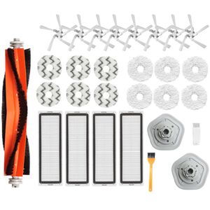 Made of high quality material, more . The mop cloth has strong and long-lasting cleaning power, which can easily respond to stains such as footprints on the floor, juice residue, and oil stains. The filter can maintain the cleaning performance of the sweeper, while reducing the penetration of dust, pollen and other allergens into the air you breathe. Side brush can go deep into the corners and edges to remove more dirt, dust and debris. It is recommended that you replace spare parts every 2 to 3 months depending on the frequency of use to keep the machine running at its best performance. Colour: picture color Material: plastic Package Contents: 1 * Roller brush 8 * Side brush 12 * Wipe 2 * Bracket 4 * Filter 2 * Cleaning brush Only the above package content, other products are not included. Note: Light and different displays may cause the color of the item in the picture a little different from the real thing. The measurement allowed error is +/- 1-3cm.