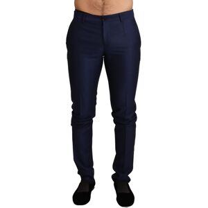 100% Authentic Dolce & Gabbana dress trousers for men Crafted from luxurious wool Slim fit design in navy blue Zipper and button closure Two front and two back pockets Zipper fly closure Logo details Made with 100% virgin wool Lined with 100% silkMaterial: 100% Virgin Wool