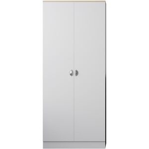 Introduce a touch of rustic charm to your bedroom with this Lyal 2-door Wardrobe. Crafted in a soft matte finish, this piece radiates warmth and sophistication. The wardrobe beautifully contrasts its finish with a textured oak effect top, providing a natural and inviting look. Its double doors open to reveal a spacious storage area, a high hanging rail is perfect for longer garments, and the top shelf offers additional storage, ideal for winter bedding and other bedroom essentials. This double wardrobe doesn't just deliver on aesthetics, but also on functionality and durability. The brushed chrome cup handles offer easy access to your stored items and add a touch of elegance to the overall design. A robust, scratch-resistant coating ensures the wardrobe can withstand daily use while maintaining its timeless appearance. Combining classic design elements with modern features, this piece is a must-have for any bedroom. 17 Stories Finish: White