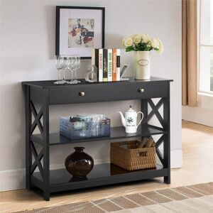 This console table is made of high-quality MDF and iron, this console table is born for long service. It comes with a large drawer and 2 storage shelves, ample enough to store items orderly. This console sofa entryway table is of classic industrial design, which can well match different décor styles and highlight your taste. Its proper size makes it perfect for the living room, bedroom, study, kitchen, and hallways to serve as a sofa table or storage shelf. Yaheetech Table Top Colour: Grey