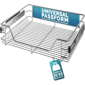 New shelves in your cupboards! These versatile telescopic drawers are ideal for the kitchen, bathroom, bedroom cupboard or workshop. Quickly and easily create new storage options in your cupboards by retrofitting them. The drawers are available for various common cupboard widths. Product Details: - Telescopic drawer for retrofitting - Greater clarity and organisation in your cupboards - 6 screws for optimised hold - All screws in silver, suitable for all kitchen decors - Can be used flexibly - Simple assembly - for standard 30cm/40cm/50cm/60cm cabinet widths (external dimensions) Important Drawer and Cupboard Dimensions: 30 cm Door - 26/27 cm Internal Cupboard Width - Basket Width 19 cm 40 cm Door - 36/37 cm Internal Cupboard Width - Basket Width 29 cm 50 cm Door - 46/47 cm Internal Cupboard Width - Basket Width 39 cm 60 cm Door - 56/57 cm Internal Cupboard Width - Basket Width 49 cm Height 14 cm Length 44 cm Extended Length 83 cm Technical specifications: - Material: chrome-plated