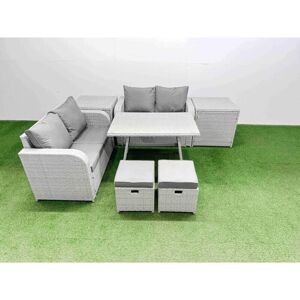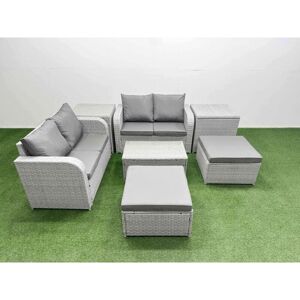 This deluxe Garden furniture set adds decoration to your courtyard, deck, backyard, porch, and even swimming pool, using high quality PE rattan and durable galvanized steel construction, which can withstand the bad weather in the UK and can be easily combined into different configurations according to your needs at any time. Set Dimensions: • 2 x Love Sofa Size: 124W x 67D x 79H cm •2 x Side table :65L x 65W x 66H cm •2 x Big footstool :65L x 65W x 34H cm • 1 x Square Coffee Table :65L x 65W x 34H cm Light grey PE rattan with dark grey fabric .Color may some difference due to light or monitor .we are unable to return the item due to color problem . Items Comes Flat Packed And Easy Assemble,Sturdy Galvanized Steel Tube Metal Frames With Powder Coating To Prevent The Rust Flat PE Rattan Completely Made By Hand, 5mm Thickness transparent Tempered Glass With Sucker On Surface To Prevent Sliding Low Maintenance ,Removable Cushion Cover And Easy Move To Different Place.Pls Keep the Cushion