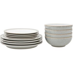 Each item in the twelve-piece dinnerware set from Denby has been crafted from high-quality stoneware and has a stunning light grey finish giving it a timeless style. This set comprises four dinner plates, four small plates and four cereal bowls perfect for everyday use and special occasions. Product Features Light grey outer ring and striking white interior Ideal for serving breakfast, lunch and dinner and will suit any contemporary kitchen Made from durable ceramic which is cheap and stain resistant Other colours and items are also available in this collection Dishwasher safe / microwave safe / freezer and oven safe Includes a 10-year guarantee Presented in a gift box Items Included 4x Dinner Plate (26.5cm) 4x Small Plate (22cm) 4x Cereal Bowls (17cm)