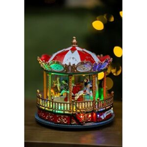 Product Overview Bring festive magic into your home with the Marco Paul Christmas Carousel . This enchanting hand-painted resin ornament combines dazzling LED lights, charming moving horses, and a rotation of eight classic Christmas songs. Measuring approx. 23.5 x 22.5cm, it’s the perfect nostalgic centrepiece for your holiday décor, creating a joyful atmosphere for family and guests alike. Key Features Musical Wonderland: Plays eight timeless Christmas songs with a simple twist of a knob, filling your home with festive cheer. Dazzling LED Lights: Multi-coloured LEDs create a warm glow, turning any space into a winter wonderland. Hand-Painted Craftsmanship: Intricate detailing, bold festive colours, and moving horses capture the charm of a classic merry-go-round. Battery Powered: Requires 3 x AA batteries (not included) for flexible placement anywhere in your home. Versatile Display: Ideal for mantels, dining tables, windowsills, or as a standout festive centrepiece. Specifications