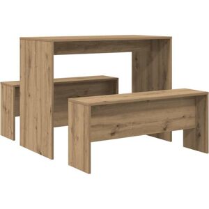 Create a warm and inviting place to start the day or enjoy a great meal with this dining table and bench set! Stable and durable material: Engineered wood is a durable and stable material with a smooth surface that is resistant to moisture, warping, and splitting, making it a reliable choice for a variety of projects. Sturdy tabletop: This dining table features a robust tabletop, making it ideal for serving meals, snacks, drinks, and showcasing your favourite decorations. Generous seating: Thanks to the generous bench seating, this dining set is perfect for gathering family and friends for a delightful feast. Easy maintenance: Thanks to its smooth surface, the dining set is easy to clean with a damp cloth and requires less maintenance. Colour: Brown oak Material: Engineered wood Table dimensions: 97 x 47 x 75 cm (L x W x H) Bench dimensions: 92 x 23.5 x 40 cm (L x W x H) Max. load capacity (each bench): 110 kg Assembly required: Yes Deliver contains: 1 x Dining table 2 x Bench SKU: