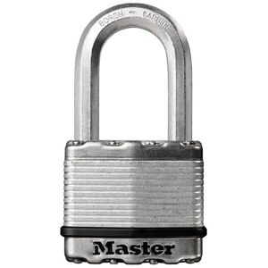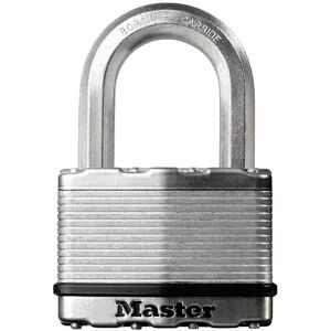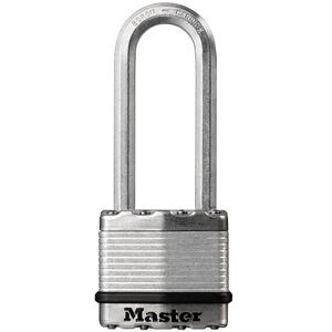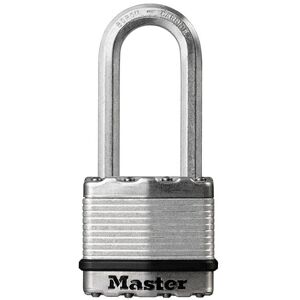 The Master Lock M5EURDLH has the following specifications: 50mm Excell™ laminated steel padlock - 51mm Octagonal boron carbide long shackle, 9mm diameter - 4-pin tumbler cylinder - dual ball bearing locking The Master Lock Excell™ Laminated Steel Padlocks are made with cutting-edge technology to deliver unprecedented security. They feature tough-cut patented octagonal boron carbide shackles, which are 50% tougher to cut than hardened steel, and dual ball bearing locking mechanisms for maximum pry resistance. The laminated steel padlocks are built for strength, with stainless steel and zinc outer components for exceptional weather resistance. They have either a precision 4-pin or 5-pin cylinder and recessed rivets that are chisel resistant. Supplied with 4 keys and a Lifetime Warranty against mechanical failure. Suggested uses: gates, sheds, storage units, fences, containers and chains.