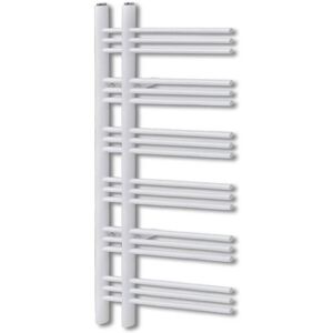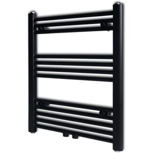 This dual-purpose towel radiator serves both as a heated towel rail and a space heater. It helps the bathroom to stay warm and free of mold, and can also be used to dry large towels and long bathrobes in the meantime. Thanks to the hot water circulation system, which doesn't use electricity, your towels will be dry in no time. The towel warmer has 12 steel cross bars of 22 mm in diameter and a black paint finish. The cross bars are extra-thick and subsequently have a higher heat output. The top and the bottom are both equipped with water inlets for an optimal water flow. It is easy to assemble and maintain. Delivery includes 1 towel rail radiator, wall brackets and screws. Colour: Black Material: Steel Style: Straight Rated thermal output: 352 W Dimensions: 600 x 764 mm (W x H) Distance between pipe centres: 550 mm Distance between the wall and the front of the radiator: 80 mm Number of cross bars: 12, with a diameter of 22 mm For wall mounting Delivery includes 1 towel rail radiator,