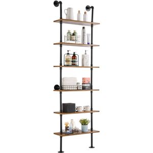 Features & Details Strong Weight Bearing: Adopting sturdy metal tube structure with thickened wooden boards, each layer can bear up to 50 pounds, which can meet a variety of storage needs; whether it's books, photo frames, artifacts, or kitchen utensils, bathroom towels, they can all be easily stored, so that your space is well organized, say goodbye to the clutter! Hard Steel Tube: ∅1“ carbon steel round tube, strong bearing force is not easy to break, to bring you a safe and stable storage experience.0.6” thickened wooden boards to provide you with sufficient gravity, easy to place all kinds of items, say goodbye to the easy to bend, poor material trouble. Flexible Use: The pipe shelf is designed to be flexible and can be installed on any wall to make full use of space. Whether it is a dining bar, laundry room, living room or study, it can be easily installed to add storage function to your space. Easy Organization: Cleverly use the wall space to store and organize the sundries,