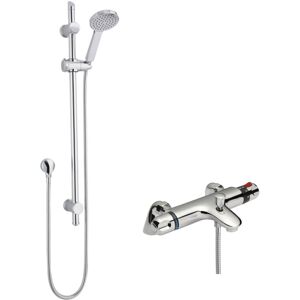 Why Choose Ceramic Discs?: Ceramic discs do not wear out like standard washers meaning this technology is long lasting and easy to use Features and Benefits: Includes bath shower mixer and shower kit Provides everything you need for a 2 outlets showering experience Double outlets systems are the most popular solution used throughout homes The perfect solution for quick, easy installation of your new shower system Thermostatically controlled Built-in anti-scald device Suitable for water systems between 1-4 bar pressure Suitable for unvented mains pressure systems Suitable for shower pumps Ceramic disc technology for long life and smooth operation Single function round handset 1.5m shower flex chrome plated brass Outlet elbow chrome plated ABS Manufactured from high quality brass & ABS with a luxury chrome finish During installation extra care must be taken to avoid damaging the fittings Guarantee : 5 Year (12 months on serviceable moving parts from the date of purchase), please see