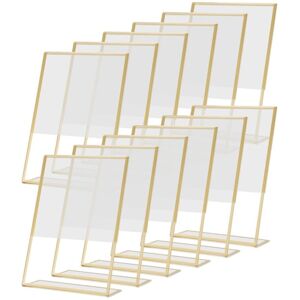Standard Size and 12 Pack: this package contains 12 pieces of 4 x 6 inch gold table sign holders; Each clear sign holder has an opening on its side for easy paper insertion, 4 x 6 inch sized paper works can nicely fit; Note: please remove the protective film before use for a clearer display Quality Acrylic Material: transparent acrylic sign holders are synthesized from quality acrylic at one time,with high strength and high transparency; It not darken under strong light or the sun,and has good stability Slant Back Design: the table number frames is designed with a stable slant base; With the innovative slant back self standing design, the acrylic holders are stable enough which makes it an perfect choice for office to display images, announcement or advertise pamphlets Multifunctional use: glod frames are proper for displaying signs flyer, paper, images, brochures, ads in the office, hotel, library, school, church, restaurant, bar, conference, exhibition, fair, trade show, wedding