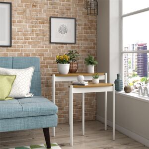 Get space-saving table space for your room with our tables. Made of laminated particleboard with sturdy powder-coated metal legs the warm walnut woodgrain finish on the tabletops pairs perfectly with the white metal legs. Get additional table space for snacks remotes and drinks by using the 2 tables as convenient end tables. Latitude Run Table Base Colour: White