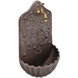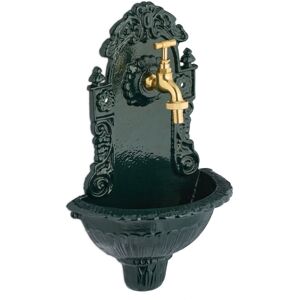 With its antique look, the green wall fountain adds a decorative accent to the patio or garden. Whether you want to wash dirty hands, clean garden tools or fill the watering can, the garden washbasin is practical for many uses. The decorative fountain is also equipped with a tap and a rear connection for the water pipe. The wall-mounted basin is made of powder-coated cast aluminium, making it perfect for outdoor use. Wall fountain in detail - Total dimensions H x W x D: approx. 40 x 24.5 x 15 cm - Internal dimensions of basin H x W x D: approx. 15 x 19.5 x 10 cm - Weight: approx. 3.8 kg - Material: Cast aluminium - Colour: Green, gold Garden washbasin for the wall - Decorative washbasin in antique design - Green fountain with golden tap - As a water tap for the garden, terrace etc. - Ideal for washing hands, filling watering cans etc. - Made of powder-coated cast aluminium for long-lasting use