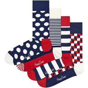 Add a splash of red, white and blue to your sock drawer with these Men’s and Ladies novelty socks with loads of bold and funky patterns. Available in a great gift box, ideal for gift giving.Filled with four pairs of socks in original designs, this matching box features Polka Dot, Thin Stripes, Thick Stripes and Filled Optic styles for a unique and colourful combination. Perfect for jazzing up your feet.The Novelty Happy Socks are made of soft 86% combed cotton for added softness and comfort and feature reinforced heels and toes for extra durability and even more comfort. They're also available in two different sizes so you can find the perfect fit.Happy Socks are a popular brand providing a high-quality sock that combines unique designs and craftsmanship. Mikael Söderlindh and Viktor Tell had a vision to spread happiness by turning an everyday essential into a colourful design piece.Today, Happy Socks has reached 90 countries and every continent. With Concept Stores all around the world, from LA to Tokyo, Happy Socks can be found in over 10,000 top fashion apparel boutiques.These socks are made from 86% Cotton, 12% Polyamide, 2% Elastane and come in 2 sizes: Men’s 6-11 UK & Ladies 4-7 UK. They come in 4 great patterns and they are Machine Washable.Extra Product DetailsHappy Socks Adult Novelty SocksSoft Combed Cotton4 Pairs Per PackReinforced Heel & Toe4 Bold & Funky PatternsRed, White & Navy ColoursA Perfect Gift IdeaSoft & ComfortableComes In Gift BoxHappy Socks Branded2 Size OptionsMachine Washable