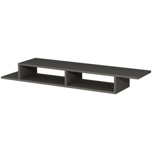 Floating TV Stand with Shelves Condition: New The floating TV stand is a modern and durable solution for your entertainment setup. Designed to accommodate flat-screen TVs up to 55 inches (139.7 cm), this stand features three open shelves that provide ample storage for media devices, accessories, or decor items. It is made from high-quality, 18 mm thick particleboard and finished with a water-resistant melamine veneer, ensuring both durability and style. The edges are banded with PVC for added protection. Key Features: Accommodates TVs up to 55 inches (139.7 cm) Material: 18 mm thick melamine-coated particleboard Finish: Water-resistant melamine veneer Edge Banding: PVC edge banding Shelves: Three open shelves for easy storage and organization Wall-Mounting: Includes all necessary hardware for easy installation Important Note: This TV stand is not designed to directly support the weight of a TV. Both the stand and the TV must be mounted separately to the wall. Dimensions: Height: 7.1 inches (18.2 cm) Width: 55.1 inches (140 cm) Depth: 11.6 inches (29.6 cm) Weight: 24.6 lb. / 11.2 kg Assembly: The product is delivered disassembled in its original packaging. It is designed for easy assembly by the customer using a power drill and screwdriver. Detailed assembly instructions and wall-mounting hardware are included in the package. For a faster and error-free installation, all parts are labelled with corresponding numbers according to the assembly guide. Care Instructions: To clean, simply use a dry cloth. Avoid prolonged exposure to moisture and water. Country of Origin: Turkiye Latitude Run Colour: Anthracite