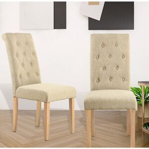 This Beige Fabric Dining Chair is a particularly stylish and versatile piece that is the perfect combination of classic tradition and modern styling. The seat of this dining chair is worthy of specific mention. It comes with a high density luxury foam filling, the chair is extremely comfortable and the shape and bounce it provides will last for years. This Fabric Dining Chair is expertly crafted from a thick fabric that is highly durable. The style is simple and minimalist, but it can complement any wooden table that you pair this with. That natural fabric tones shade give an adaptable look and This Fabric Dining Chair would look fantastic in other spaces around the home. The price is for one pair of chairs. Features Soft and comfortable backrest and seats High density and luxury foam filling Highly durable Assembly: Required Material: Fabric with wooden legs Colour: Beige Height: 98cm Width: 61cm Length: 46cm