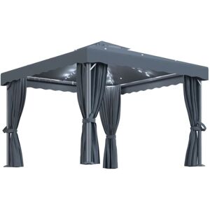 This stylish gazebo will surely turn your yard into a sophisticated and functional focal point! It is designed to provide a cool place for outdoor parties, family picnics, backyard barbecues and other social gatherings. It is constructed with aluminium pole and powder coated steel supporting tube, which ensures superior sturdiness and durability. The canopy and side walls are made of quality polyester fabric with PA coating, protecting you against the harmful rays and mild rain. A well-designed 2-tier roof ensures ample airflow underneath. Additionally, the curtains and mesh screens are included for full protection, giving you added privacy while keeping annoying mosquitoes and other insects away. Hooks and loop fasteners are included for easy attachment. What's more, the string light creates a cosy atmosphere in your garden when the sun goes down. The lights bring no pollutions to the environment as it is charged by solar energy during the day. Note: Please do not leave it out in