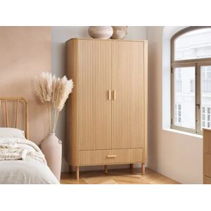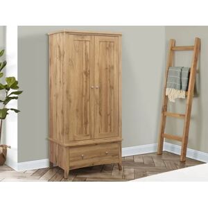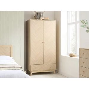 Inspired by the symmetry and precision of classic chevron patterns, the Herringford range brings an element of architectural finesse to your bedroom. Each piece is thoughtfully constructed from high-quality particleboard, finished with a laminated oak effect that captures the essence and visual warmth of real wood. The Herringford 2-Door 1-Drawer Wardrobe expertly combines compact design with ample storage capabilities, making it a superb choice for contemporary living spaces. This functional piece features two doors that open to reveal a spacious hanging area. Transform your bedroom into a sanctuary of ordered beauty with the Herringford range. This collection is perfect for creating a serene retreat with its cohesive design that speaks to both contemporary tastes and classic sensibilities. Embrace the blend of modernity and tradition with the Herringford range where every piece is not just furniture but a piece of art. Each piece is thoughtfully constructed from high-quality particleboard, finished with a laminated oak effect that captures the essence and visual warmth of real wood. Birlea 2 Door 1 Drawer Oak Brown Wooden Wardrobe Herringford in Light Oak