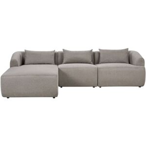 Minimalistic Modern Sofa with Additional Cushions. This couch is going to elevate the living room with its minimalistic, modern look, and bring another level of comfort to you and your houseguests. Upholstered with durable polyester fabric, the piece is pleasant to touch and doesn't require daily care to last for many years. It features a low backrest, which will definitely draw attention, and thickly padded seats, which are perfect for lounging. The sofa also features a set of smaller cushions, that can be used as throw or backrest pillows. Details: Product Type: 3 Seater Sofa Style: Modern General Color: Beige Shade: Taupe Material Type: Fabric Main Material: Fabric Additional Material: Synthetic Material Filling Material: Foam Material Composition: 100% Polyester Shape: L-Shaped Arm Style: Track Orientation: Right Hand Pattern: Solid Seat Construction: Wood Seat Foam Density: 24/30 kg/m3 Seats Up To: 3 People Dimensions: Armrests Height: 63 cm Depth: 174 cm Seat Thickness: 44 cm