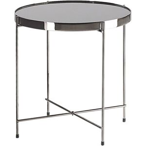 Glamour Living Room Table. Bring a touch of glamorous elegance to your living area with this shiny side table that instantly upgrades any decor scheme. The mirrored top is made out of durable tempered glass painted in a stylish black. Completed with powder coated sturdy metal legs in silver, the piece adds a luxurious vibe to both modern and traditional arrangements. The table is a functional base for vases with fresh flowers, decor items like candles or trays if set next to the sofa or for books and magazines in a reading corner. Details: Product Type: Side Table Style: Modern General Color: Black, Silver Material Type: Glass Main Material: Tempered Glass Additional Material: Iron Legs material: Metal Top Material: Glass Shape: Round Finish: Powder Coated Storage: No Dimensions: Width: 40 cm Length: 40 cm Height: 44 cm Weight: 5 kg Weight Capacity: 10 kg Offer Includes: 1 x Side Table Key Features: Chic Look, Works Great with Many Interior Styles, High Quality, Easy Care and Durable