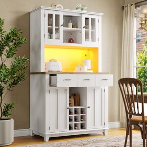 Modern Multi-Function Buffet Cabinet with Smart LED Lighting (100×40×180cm) Upgrade your kitchen or dining room with this versatile storage solution featuring remote-controlled RGB lighting, built-in power outlets, and adjustable organization. The water-resistant countertop and spacious design make it perfect for appliances and display. Ivy Bronx Finish: Natural