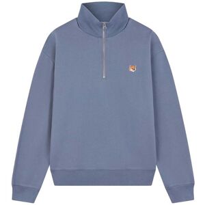 Known for its relaxed approach to fashion, Maison Kitsune, adds its spin to a classic wardrobe staple. Crafted from cotton, this zip sweatshirt comes with a signature fox patch at the chest that adds a whimsical touch to the design Colour: Blue Composition: 100% Cotton Care: Machine Wash Only Features: Blue Plain fleece sweatshirt Comfort fit Half zip collar Long sleeves Ribbing at the neckline, cuffs and waist Embroidered Fox Head patch on the chest Plain back Long sleeves