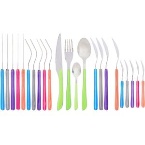 Bring a burst of color and contemporary style to your dining experience with the Premier Housewares 24Pc Multi Coloured Cutlery Set. This high-quality cutlery set is designed to elevate your kitchen's aesthetic while ensuring functionality. Each piece is crafted from non-corrosive stainless steel, guaranteeing durability and ease of maintenance. The set includes 24 pieces, featuring six vibrant color schemes that brighten up mealtimes and add a touch of fun to your table settings. With a variety of hues, this cutlery set allows you to mix and match according to your mood or occasion, bringing a playful yet elegant touch to any dining arrangement. The cutlery features curved, ergonomic handles that are easy to grip, making them comfortable to use during any meal. The thoughtfully designed handles not only provide a comfortable dining experience but also add an extra layer of style to your table. This set is perfect for both everyday use and special occasions, ensuring you have the right cutlery for any event. Packaged in a bespoke presentation box, it makes an ideal gift for friends and family, suitable for housewarming parties, weddings, or anniversaries. The Premier Housewares 24Pc Multi Coloured Cutlery Set is more than just visually appealing; it offers practicality with its robust construction and stylish design. Each piece is dishwasher safe, making clean-up a breeze. However, to maintain the vibrant colors and ensure longevity, it is recommended to avoid abrasive cleaners and always dry each piece with a soft dish towel after washing. Whether you're looking for a quality cutlery set for your home or a professional kitchen knife set, this collection meets all your needs with its blend of form and function.
