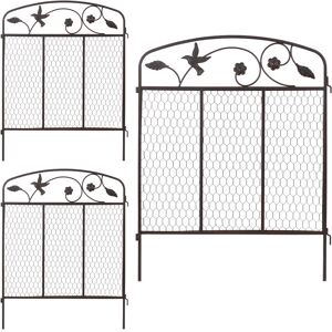 These beautiful ornate garden fences provide a quick way to transform your garden and create areas that are visually pleasing. Separate lawn areas from flower beds, pathways or driveways with these metal fence panels. The garden fencing can be arranged individually and connected via the little hook on the side. They come in a lovely black leaf design and will truly enhance your garden space. Garden edging at a glance - Dimensions per panel: approx. 39 x 1 x 28.5 cm (LxWxH) - Total dimensions (4 panels): approx. 150 x 18 cm (LxH) - Weight per panel: approx. 200 g - Material: steel - Colour: black Garden low fencing - 4 small fence panels to suit your needs - Create clear and neat borders in your garden - Low height is perfect for flower beds and lawn areas - Decorative leaf design - Easy set-up: push in the ground via spikes Included in delivery - 4x fence elements - Decorative items are not included in delivery