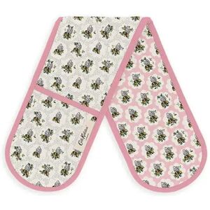 Using a repeat pattern of busy bees, this Cath Kidston Provence Bee Double Oven Glove will protect you from heat, steam and spills in the kitchen. These delightful double oven gloves feature a stylised honeycomb cream background. The reverse features the same print on a pale pink background and is completed with complementary pink edging. The polyester filling will protect your hands when moving hot pots and pans or when carrying hot dishes and plates to the dining table.