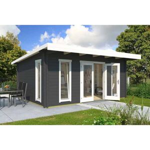 The Barbados gardenhouse is a pent roof model with double glazed windows and fully glazed double door that provide plenty of natural light making this model great for a garden office or even a garden gym. Due to its 70 mm wall thickness, this cabin is suitable to use all year around. Features: Use for : Outdoor living, Workshop & office, Wellness Construction : Wind-tight chalet connection Wall thickness : 70mm Wall dimensions : 399x519cm Floor size : 19.44m2 Ridge height : 238cm Wall height : 210.8cm Front overhang : 30cm Roof area : 33.52m2 Roof angle : 4° Doors : 1 x 1580 x 1933mm Windows : 3 x 552 x 1729mm Pallets : 630x115x94cm, 1975kg, 200x115x45cm, 300kg NOTE: Roofing felt is not included, but is available to purchase as an optional extra, please contact us for pricing. Please Note: Please choose your preferred colour from the options listed below. For any questions or assistance, feel free to contact us. Colour options: Light Grey Carbon Grey Glacire Green Swedish Red White .