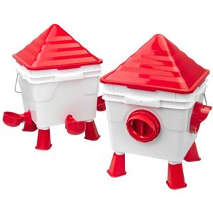 Key Features Automatic Water Dispenser - KCT Chicken Feeder and Drinker Kit - A gravity-fed design for automatic water and food supply that ensures a constant source of fresh water for your chickens, reducing the need for frequent refilling and minimizing the risk of them running out. Durable and Lightweight - This combination provides ease of use and portability, allowing you to move the feeder around your coop easily. 360 Degree Access for All Birds - This ensures all of your chickens/poultry have equal opportunity to reach the feed, minimizing competition and promoting flock harmony. Easy to Clean - Accessible design allows for quick cleaning and prevents build-up of dirt and bacteria, promoting chicken health. A transparent design allows for easily monitoring of water levels and identify any potential issues like contamination or depletion. Specifications- Available as 1kg + 1L kits or 3kg + 3L kits Bid farewell to constant refilling and ensure your feathered friends stay happily