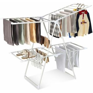 Our 2-tier laundry stand is sure to save your time and energy in drying. 2-layer design with 4 wings and 28 rails can hold various items. Besides, you can effortlessly adjust the top wings' height according to the clothes' height. Plus, our drying hanger is made of solid steel material, which is rust-proof and weather-resistant. And it's ideal for both indoor and outdoor use. When not in use, you can also fold it into narrow shape and store it in any corner to save space. Costway 2-Tier Clothes Drying Rack Folding Dryer Stand w/ Height-Adjustable Wings in White