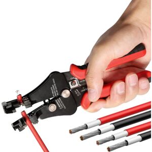 1. 【PROFESSIONAL PHOTOVOLTAIC WIRE STRIPPER】 Suitable for 2.5mm²、4mm²、6mm² Photovoltaic wire and cable (AWG13/11/10) cutting and stripping, with alloy steel pliers design, can easily peel off the outer skin of the cable and maintain the integrity of the core wire. 2. 【EASY TO USE】 Made of high-quality PP+TPR material, this electrician wire stripper is durable and practical. It conforms to the ergonomic design and perfectly fits the shape of the hand grip. The soft and non-slip handle provides maximum grip comfort and reduces hand fatigue. 3. 【ADJUSTABLE GUIDE SCALE】 Equipped with a locator suitable for self-adjustment of the jaws, the stripping pliers can adjust the stripping length, and at the same time, turn the fine-tuning knob of the thumb wheel to fine-tune the tension and gap of the jaws, which can perfectly control the stripping tension. 4. 【REPLACEABLE AND ADJUSTABLE】 Adopting high-density springs, wire stripping is more comfortable and efficient, not easy to fall off, and has
