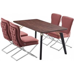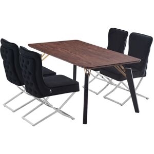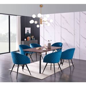 Life Interiors - Cosmo lux Sofia Dining Set - a Walnut Wooden Dining Table and Set of 6 Dark Grey Velvet Dining Chairs - Dining Room Kitchen
