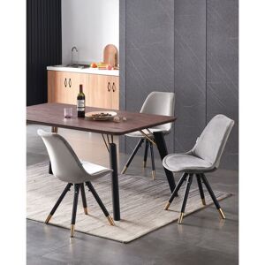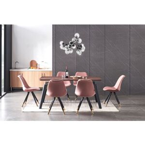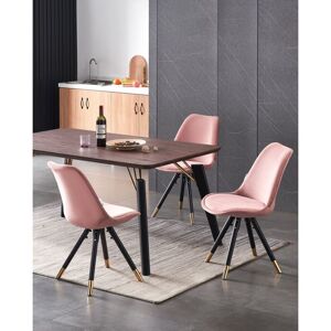 The Cosmo LUX Rectangle Dining Table has been designed with precision and a luxury finish to deliver an amazing dining experience. The sleek design of this table is giving it both functionality and a modern look with a touch of a rustic home feel. The wooden look of the top gives it a warm rustic feel while the black metal legs with a gold chrome frame bring the modern feel. Its luxury yet simple design will elevate your dining space to a new level. Comes with the Scandinavian and iconic Sofia faux leather cushioned Dining chairs, Curated with utmost care and precision to detail. The Chair features high-density foam cushioning with metal legs covered with gold end caps. The union between ergonomic construction and padded seating ensures comfort levels are premium. The style and comfort levels are simply unmatched. Modern design with simple lines complemented with delicate curves and upholstered in soft lush velvet. The dining set is ideal for the dining room, kitchen restaurant, and