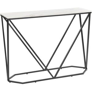 Modern Console Table with Marble Effect Top. Elevate the look of your living room with this elegant console table. The rectangular tabletop, crafted from high-quality MDF, showcases a white marble effect paper finish that adds glam vibes and sophistication to any interior. Supported by sleek, powder-coated metal legs, the table not only looks stylish but also lasts for years to come. Details: Product Type: Console Table Style: Scandinavian General Color: White, Black Material Type: Wood Main Material: MDF Additional Material: Iron Frame Material: Metal Legs material: Metal Top Material: Engineered Wood Drawers: No Finish: Veneered Leg Caps/ Pads: Yes Shelves: No Dimensions: Depth: 30 cm Width: 100 cm Height: 75 cm Weight: 8 kg Top Weight Capacity: 20 kg Offer Includes: 1 x Console Table Key Features: Elegant Design, Modern Marble Effect Finish, Perfect for Both a Bedroom and a Living Room, High Quality, For Best Care, Protect Against Heat and Moisture with Coasters and Placemats, Leg