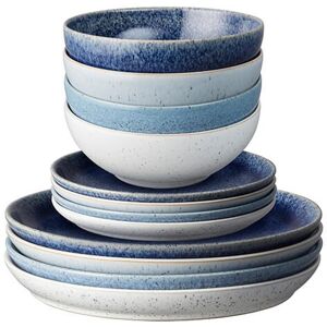 This set is a modern tableware set. With three colourways ( Chalk dinner plates, Cobalt small plates, and Pebble cereal bowls), it is sure to make an impression. The hues of blue are inspired by colours and textures that will create an honest and calming aesthetic in the home, the range was designed and hand-crafted by experts with a focus on stylish laid-back entertaining. Perfect for everyday use in the working week and for your tableware during dinner parties. Denby