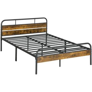 Feature: For double size mattresses, size 135 x 190 cm Industrial style: black frame with wood-effect headboard and footboard 31.5 cm underbed clearance for storing boxes, suitcases Steel frame supports up to 320 kg, with EVA mats on middle bar to reduce noise for quiet sleep Adjustable foot pads for balance Easy to assemble Specification: Colour: Grey, Black Material: Steel, MDF Overall Dimension: 137W x 196D x 100H cm Footboard Height: 57.5 cm Bottom Height: 31.5 cm Weight Capacity: 320 kg Item Label: 831-827V01GY 1 x Bed Frame 1 x Manual