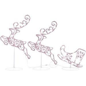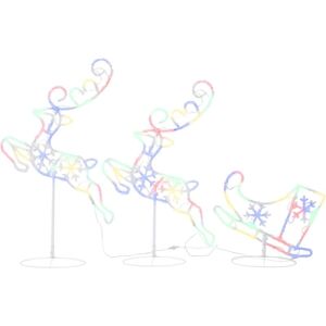 Decorate your garden or house with this unique collection. This 4 reindeers and sleigh Christmas decoration paired with colourful light bring out the true beauty in the season! Crafted from acrylic and PVC around a steel frame, this lighted reindeer is perfectly weather-resistant over the holiday