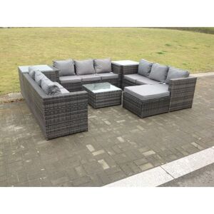 This classic U shaped corner sofa can accommodate 10 peoples and has a comfortable and soft pillow cushion back, being made of new premium dark grey rattan that will withstand our British weather of rain, wind and sun. The cushions are premium quality, super thick, with washable covers Fimous 10 Seater U Shape Rattan Sofa Set Outdoor Garden Furniture Patio With 3 Table in Dark Grey