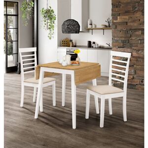 This compact table has a simple but highly pleasing design aesthetic. Its dimensions of H 75cm x W 80cm x D 60cm, so the table is purposely small. With space often in short supply, we recognise that some furniture pieces need to be designed with that in mind. This is a piece that can be slotted comfortably into even the smallest of spaces. The table combines a classic light oak-toned table-top with stylish white legs. It's a stylish look that will blend seamlessly with any décor and colour design scheme. Available as an individual table, or as a set with two matching chairs, it can be placed all around the home. In the kitchen, it's the ideal breakfast/dining table for two. It would also work impressively as an occasional work desk, with plenty of space for a laptop and whatever else you might need close at hand. Both the table and the chairs require self-assembly. Features Solid rubberwood Designed for small space Available as a table or as a set with 2 chairs Assembly: Legs need